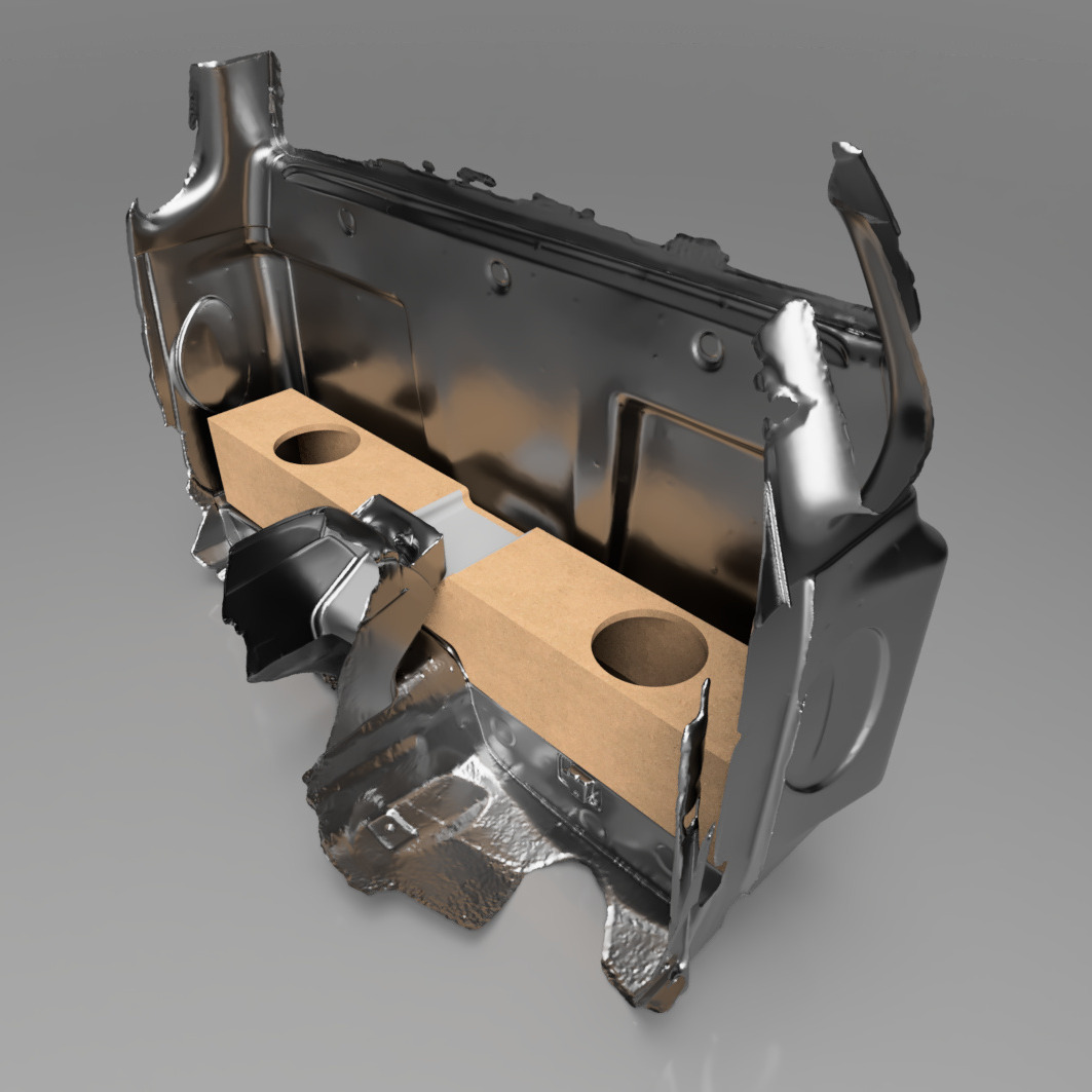 Off-the-shelf sub boxes rarely fit properly behind FG ute seats due to the tight packaging. This project used a 3D scan of the full rear cabin width to model the space accurately, then developed enclosures around volume and spacing requirements for sub performance. Two designs were created—dual 10” and dual 8”—as a practical exercise in scan-to-CAD workflow and constraint-driven packaging.